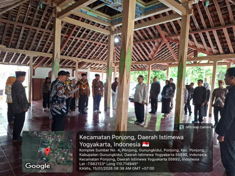 Pemerintah Kalurahan Ponjong melaksanakan apel dalam rangka memperingati Hari Desa pada Kamis, 15 Januari 2026, pukul 08.00 WIB, bertempat di Aula Balai Kalurahan Ponjong. Apel ini diikuti oleh Pamong Kalurahan Ponjong serta mahasiswa KKN dari Universitas Duta Bangsa (UDB) dan Universitas Gadjah Mada (UGM).
